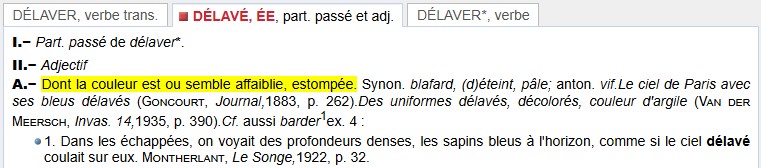 Une teinte peut tout à fait être qualifiée de délavée . Ci-dessous la définition donnée par le Tlfi, et ici un exemple d’article qui emploie abondamment cet adjectif pour qualifier les teintes/couleurs utilisées en déco.